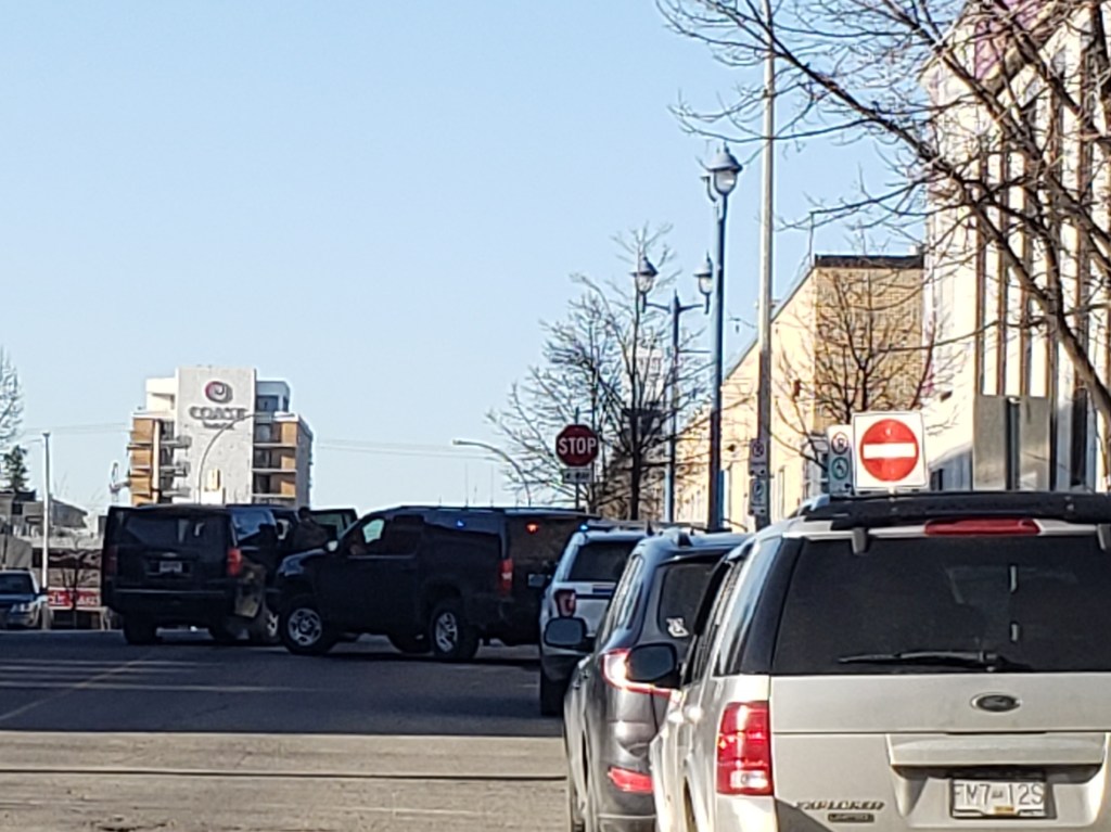 As of 8:20 am, RCMP from the North District and Prince George RCMP have left the scene. One RCMP member was remaining on scene. When we arrived to the scene, an audible alarm was coming from a business on 3rd Ave. No further details.