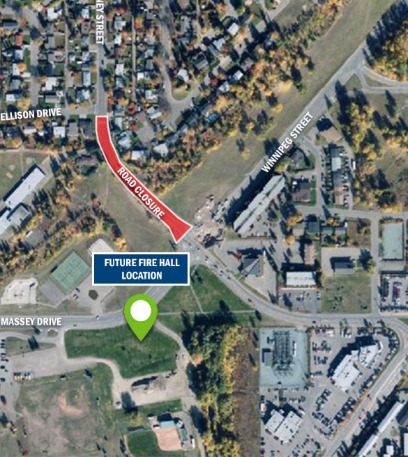 PRINCE GEORGE, BC: Starting at 7:00 AM on Monday, June 8, Carney Street will be closed to all vehicular and pedestrian public access between Winnipeg Street and Ellison Drive to allow crews to install a water main connection for the new fire hall, currently under construction.