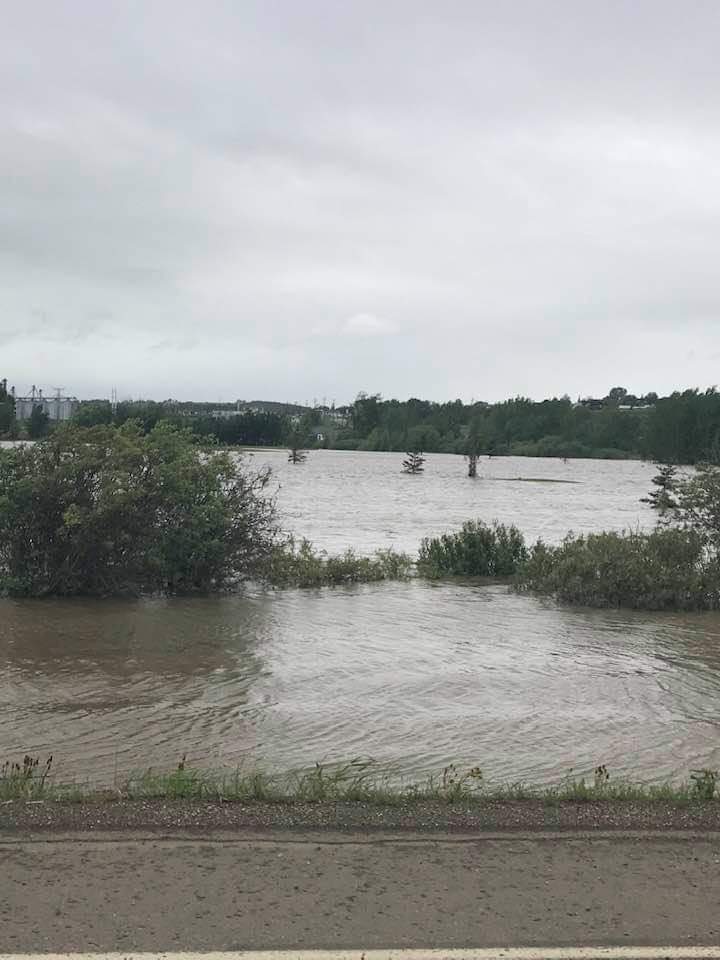 UPDATE: For Monday, the North Peace Region will continue with heavy rain. An additional 15 to 20 mm. We have added some photos from Dawson Creek as the creek is at flood stage.