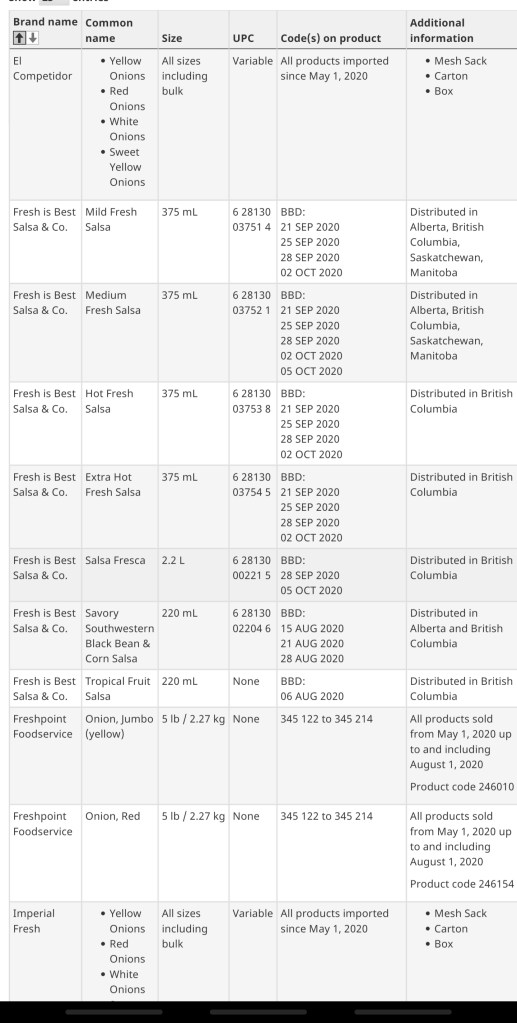 Ottawa, August 7, 2020 – The food recall warning issued on August 1, 2020 has been updated to include additional product information. This additional information was identified during the Canadian Food Inspection Agency’s (CFIA) food safety investigation.