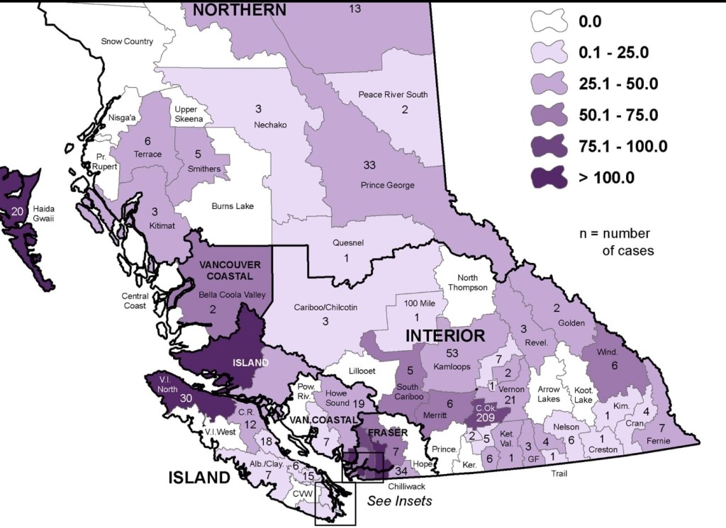 “Since the start of the pandemic, there have been 1,737 cases of COVID-19 in the Vancouver Coastal Health region, 2,818 in the Fraser Health region, 173 in the Island Health region, 429 in the Interior Health region, 137 in the Northern Health region and 78 cases of people who reside outside of Canada.