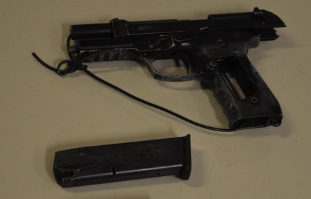 PG RCMP seized this handgun during a robbery investigation at a residence on the 1600 block of 11th Ave. Police found the pistol in the backyard with the magazine discarded in close proximity.