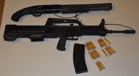Members of the Prince George RCMPβs Street Crew Unit located a prolific offender wanted on arrest warrants driving a stolen vehicle and they tracked the individual to the Walmart parking lot at 6565 Southridge Avenue. After arresting the suspect, Street Crew Unit members located a loaded 5.56 semi-automatic rifle at the driverβs feet and loaded, sawed-off shotgun under the passengerβs seat. Police also noted that the magazine for the rifle had the pin drilled out and it was loaded with 23 rounds of ammunition, making it a prohibited item.
