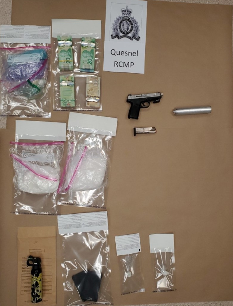 “To put the drug seizure into perspective, cocaine is sold at the street level in half grams (0.5 grams) and meth and fentanyl are sold at the microgram (0.1 gram) amounts. When you do the math, this seizure took a lot of doses of harmful drugs off the streets,” said Cpl. Matt Isaak of the Quesnel RCMP Crime Reduction Unit. “The fact that this man had a loaded handgun with a silencer is also disturbing and speaks to the level of violence associated to the drug trade.”