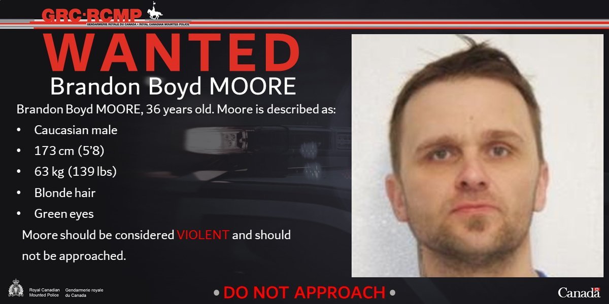 Brandon Boyd Moore, 36 years-old, is wanted on a Canada wide warrant for breaching his release order.
