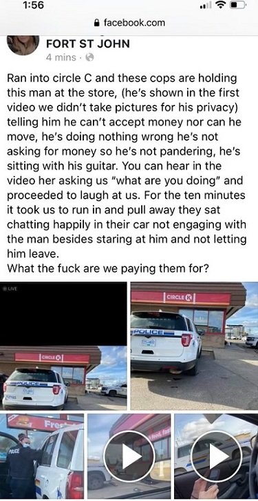 “It is clear from the post that the author did not know how the incident was initiated and what was happening during theΒ incident”, said Cst Chad NEUSTAETER, Media Relations Officer for the Fort St John RCMP.Β “To clarify for the public what occurred from the police perspective, the Fort St. John RCMP thought it would be appropriate to describeΒ what was actually occurring.Β