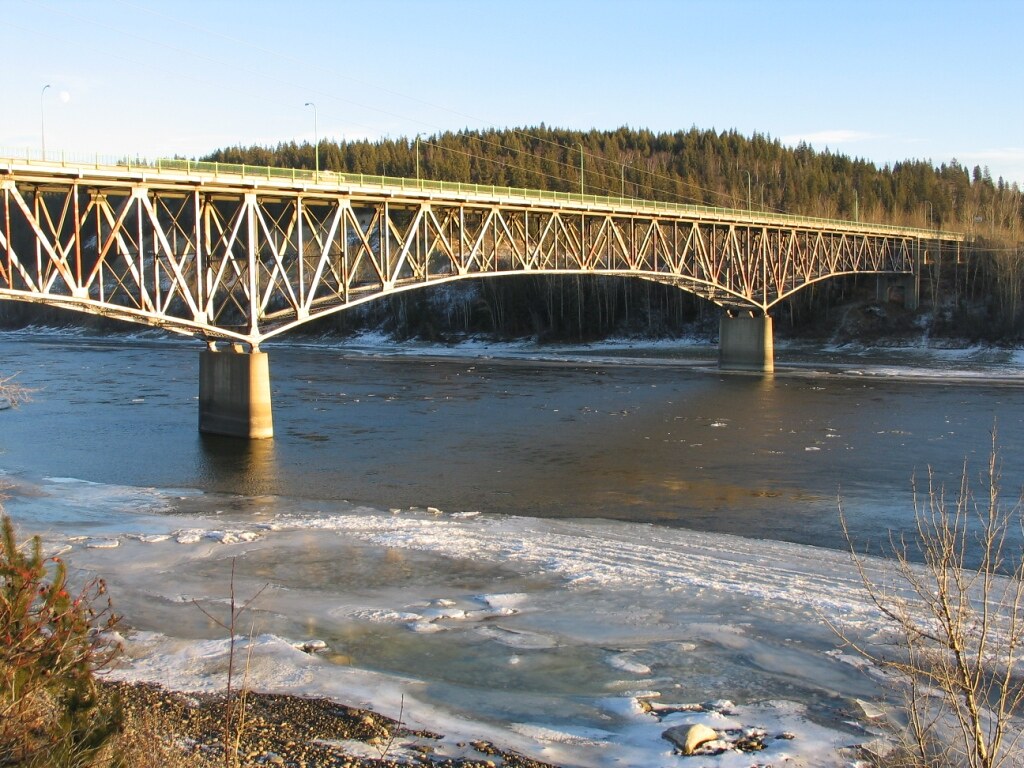The original Simon Fraser Bridge was built in 1963 and, as part of Highway 97, serves the main north-south route through Prince George. In 2009, the bridge was twinned,Β with the completion of an adjacent two-lane bridge bringing four-lane capacity to the crossing.