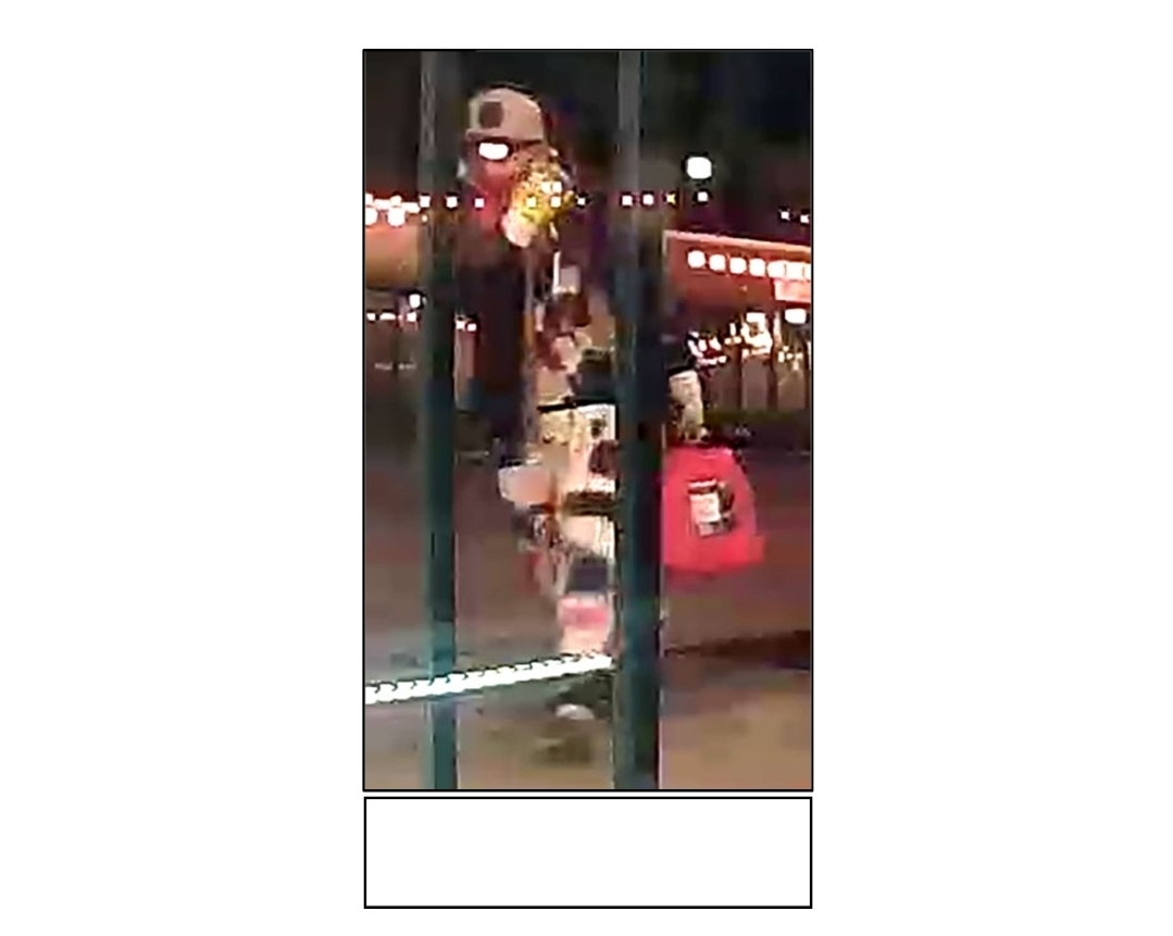 Suspect seen carrying a fuel can on 3rd Ave. If you can ID this person, call RCMP at 250-561-3300.