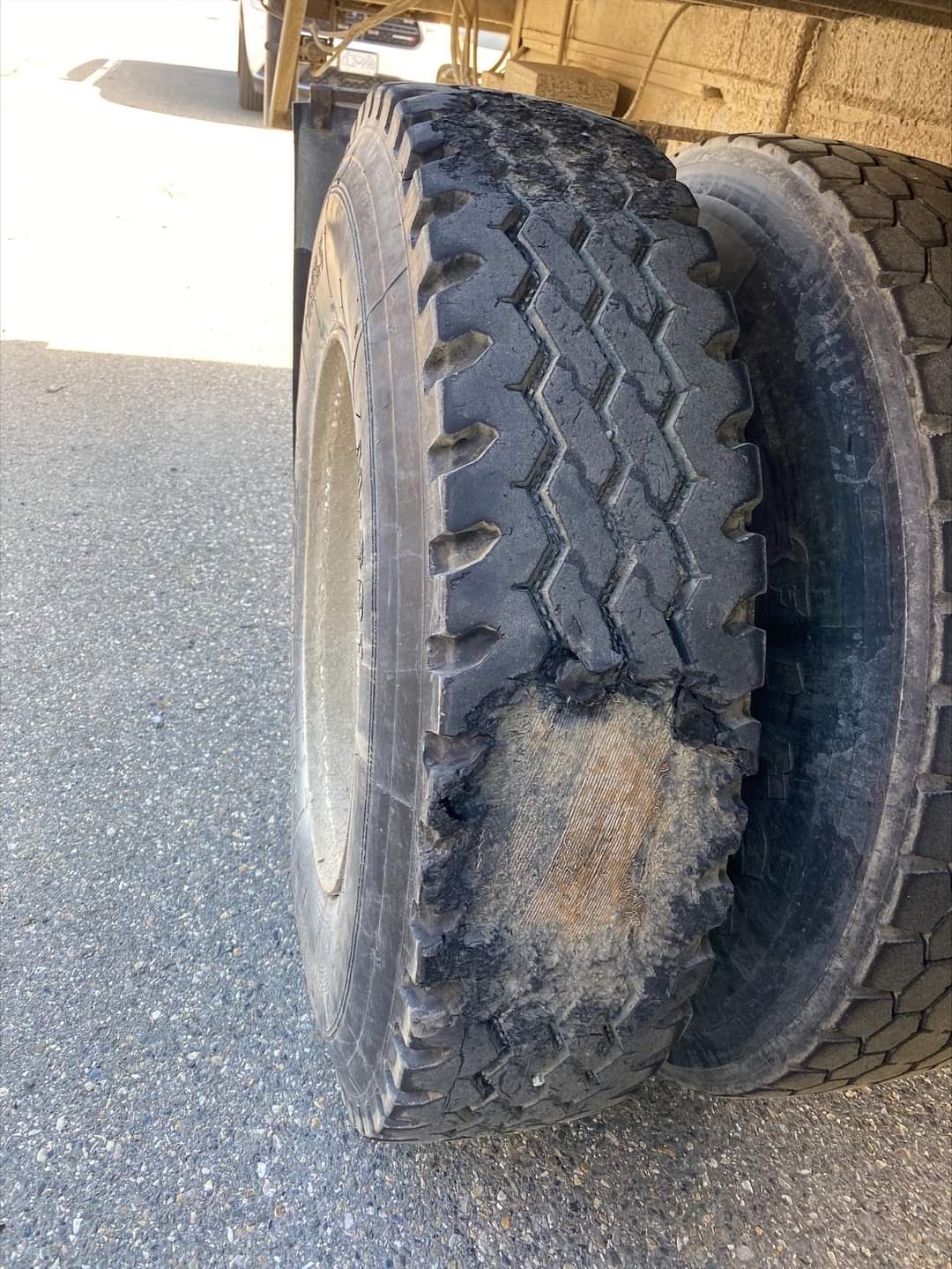 Lost tire treads (right and left outer tires on third axle)