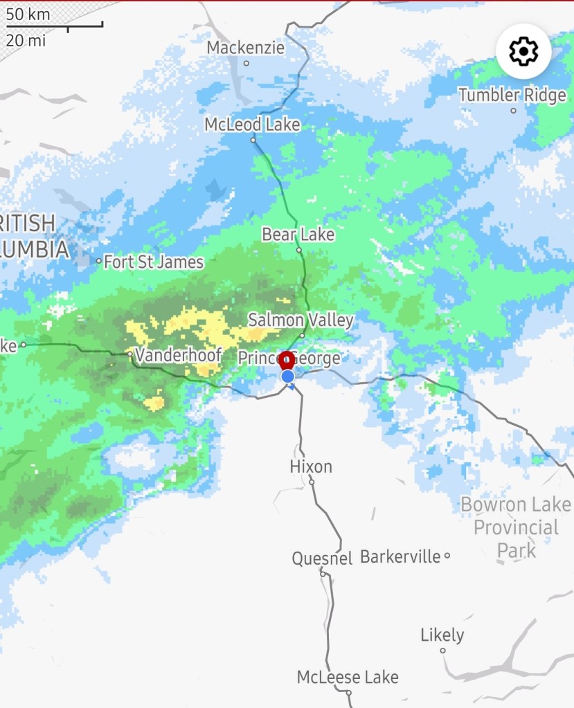 UPDATED January 12, 2023 at 9:34 PM – Freezing rain mixed with wet snow is forecast for the next while in the Prince George area, particularly north on Highway 97 and to the west along Highway 16. Heavy snow is also expected in the Pine Pass region tonight. 10 to 15 cm of snow is expected.