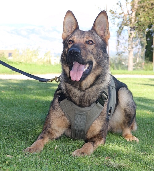 Police Service Dog ‘Mako’ shown here in a photo from August 2021. ‘Mako’ is always ready to do the job he is trained to do. – RCMP Photo.