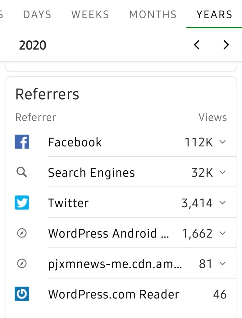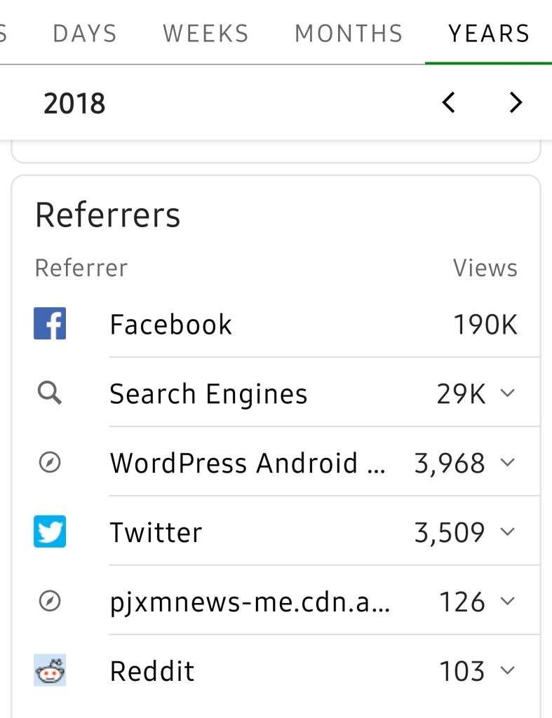 The images below are from the PJXM WordPress Jetpack. PJXM started a new website in 2015 on WordPress. Clearly Facebook and search engines such as Google drives PJXM to success each year. 2016 was the best year over any other.