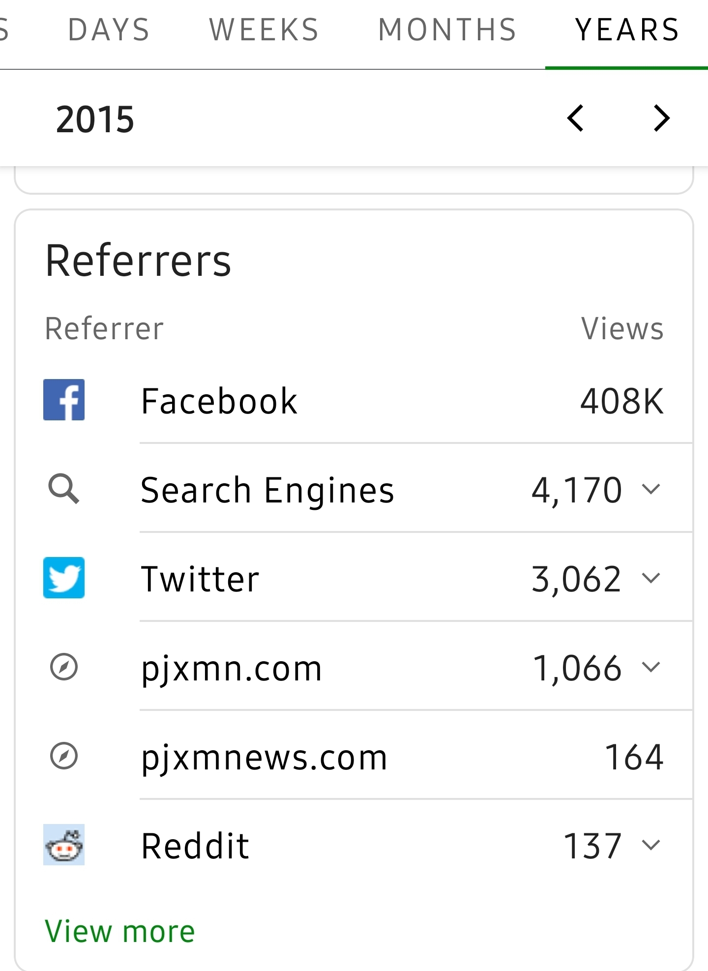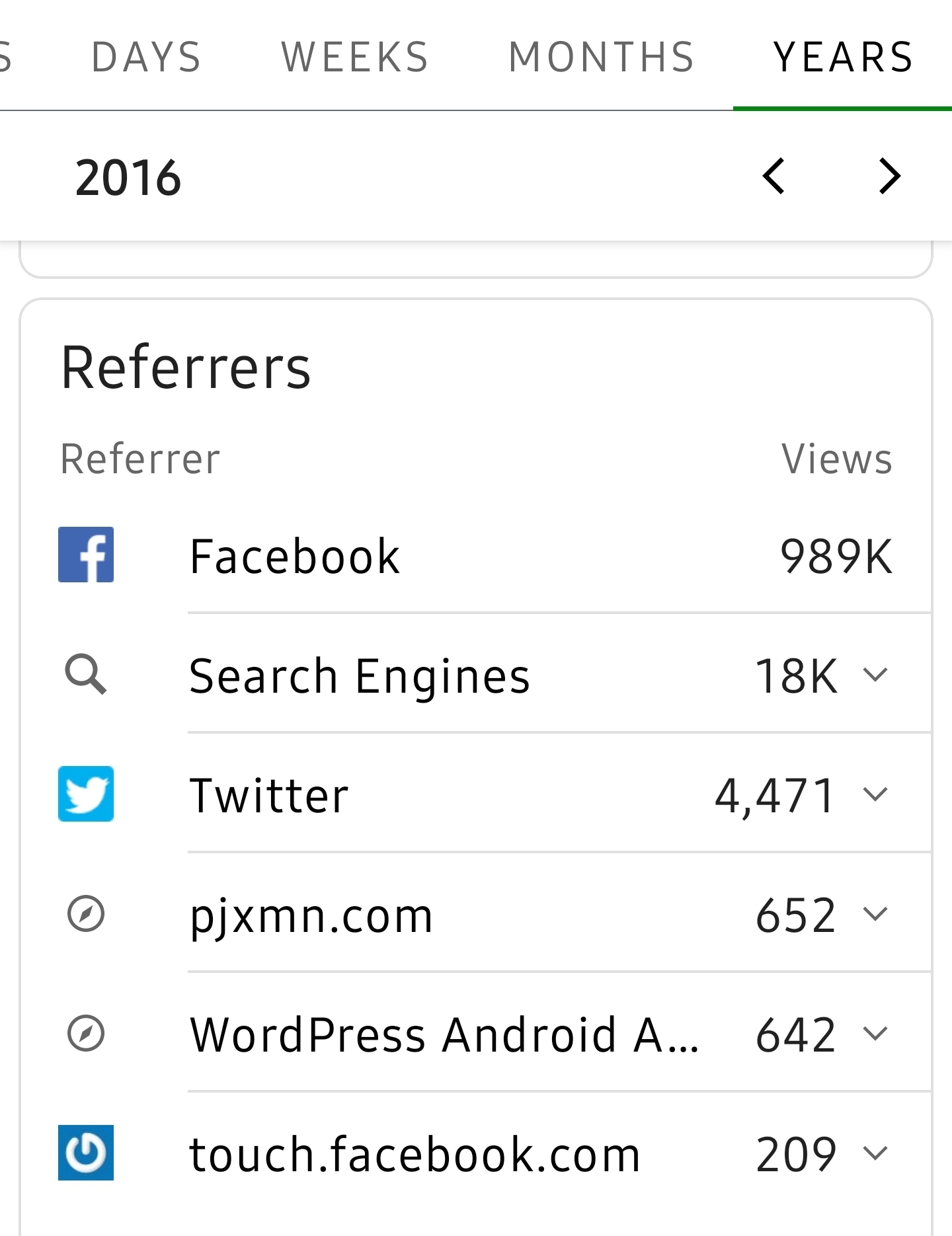 The images below are from the PJXM WordPress Jetpack. PJXM started a new website in 2015 on WordPress. Clearly Facebook and search engines such as Google drives PJXM to success each year. 2016 was the best year over any other.