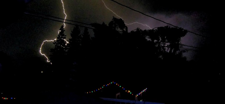 Around 1 am, the storms were still kicking to the north and northeast of the city, around Salmon Valley and up towards Highway 16 East, as by this time the storms had split up, according to radar. Intense lightning and rain continued on until at least 2 am.