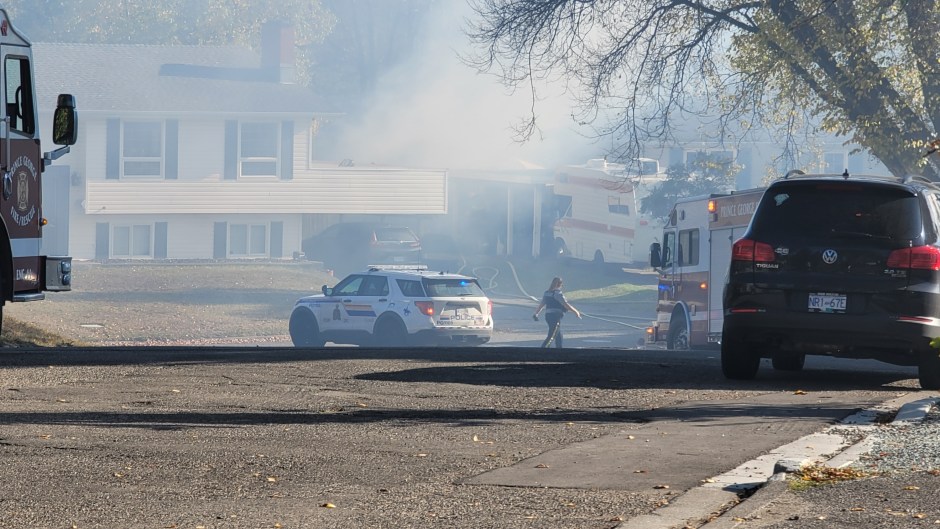 Fire crews head to the scene of a grassfire in a residential backyard on Edmonton Street on September 23, 2023. The home is located a few houses away from PJXM News. PJXM News video.