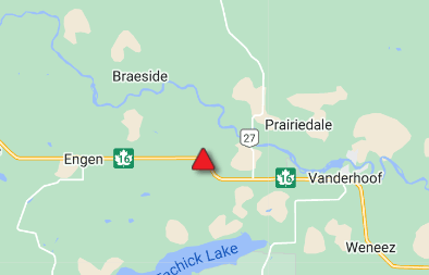 Motorists be advised that Highway 16 is closed 6 km west of Vanderhoof due to a vehicle incident. The vehicle incident is located between Bonney Beef Rd and McCall Rd.