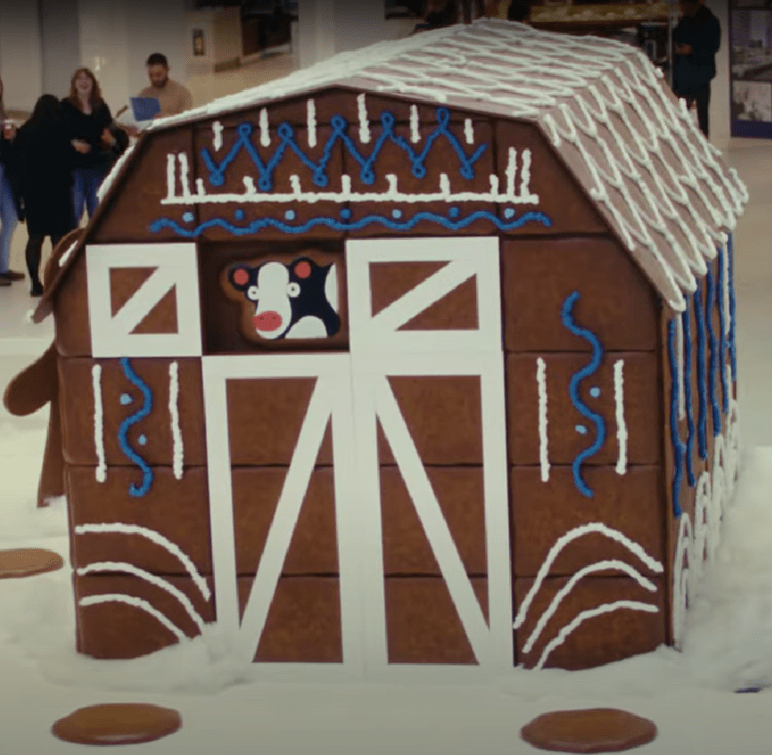 To generate awareness about the campaign, BC Dairy created a life-sized gingerbread barn at West Vancouverβs Park Royal Shopping Centre where, in early November, shoppers were greeted with hot chocolate and gingerbread cookies to make the holidays just a little bit sweeter. Following this festive event, a video has been created to recap the experience, and it will be used throughout December to inspire viewers to contribute to the cause through donations.