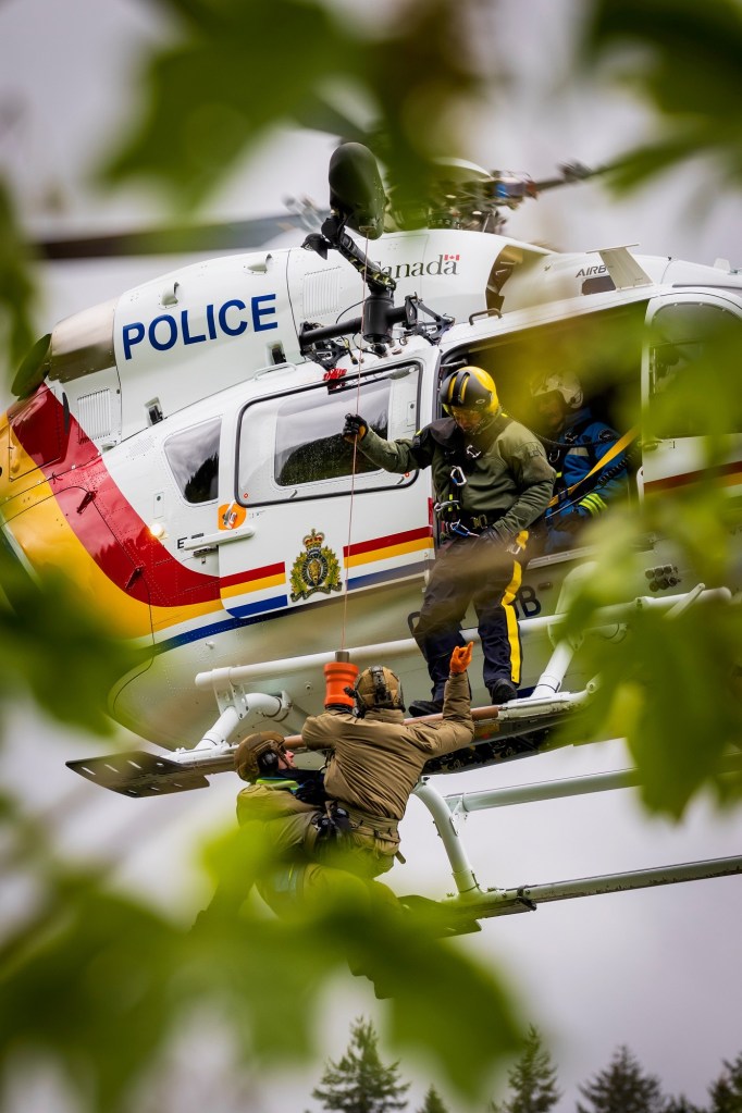 The RCMP uses the larger, twin engine helicopter, the Airbus H145, to transport people like the Emergency Response Team, Explosive Disposal Unit, Police Dog Services and the Underwater Recovery Team, or during search and rescue operations, due to its hoisting capabilities and the ability to fit more people and equipment inside.
