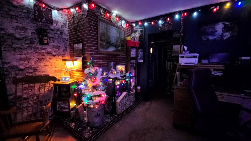 This Christmas however, that spirit of just how wonderful the season is, I know it isn’t for all, has arrived. For the first time in 10 years I decorated the entire upstairs with Christmas. A total of 6 Christmas trees inside, 2 large ones and 4 small trees, an awesome Christmas village, a full outdoor display on the front lawn, and I snowed in the heaven cabin houses with cozy lights and white fluffy sparkles. My sister added in a chair for my dad just like what mom has on her cabin heaven house and now they’re together again along with my big boy german shepherd, Blu, who is also very missed during Christmas.