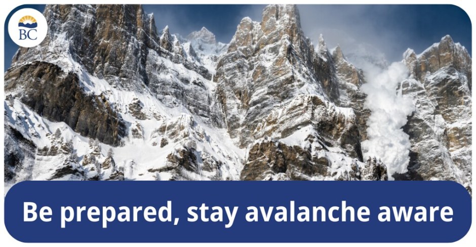 People venturing into British Columbia’s backcountry are encouraged to create a trip plan, be informed about avalanche and weather forecasts, and be prepared for the possibility of an avalanche.