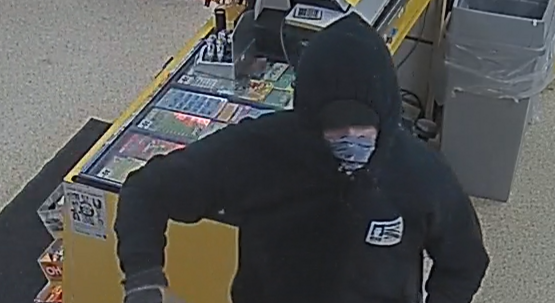 Police say the suspect entered a gas station on the 11400-block of Carmel Drive around 6:30 PM on that date and pointed a firearm at the lone employee, demanding money from the till.