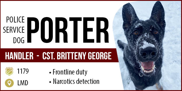 Each month the BC RCMP will feature a police dog from around the province including the Lower Mainland District Integrated Police Dog Service (IPDS) which includes partners from the Abbotsford, Delta, New Westminster, Port Moody and West Vancouver Police departments.