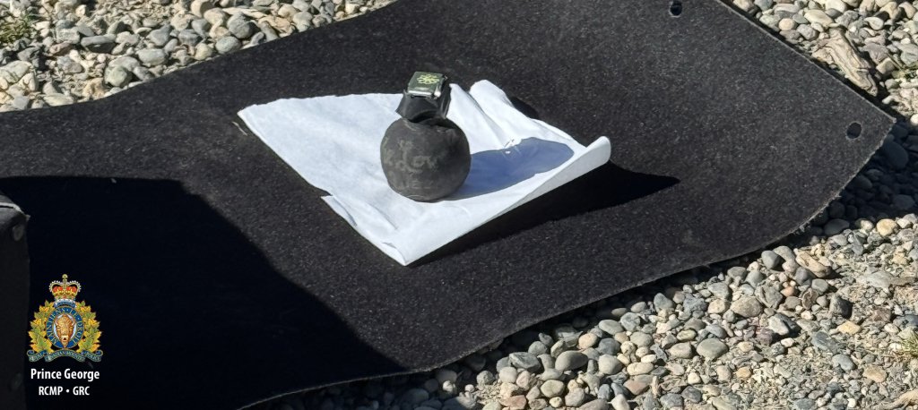 Additionally, investigators located a hand bag with what appeared to be several hand grenades at one of the residences. The Explosives Disposal Unit (EDU) from the Lower Mainland was contacted to dispose of the alleged grenades, which were found to be fully functional.