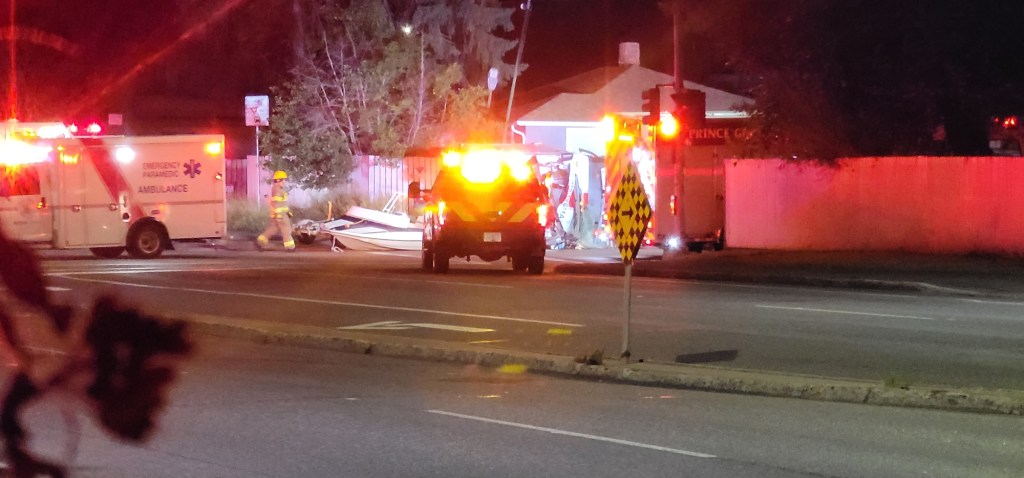 Two paramedics suffered minor injuries following a serious crash just after midnight on 15th Ave at Carney Street in Prince George…